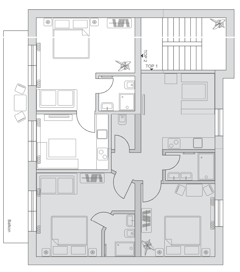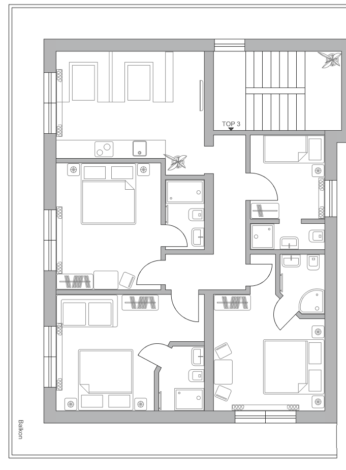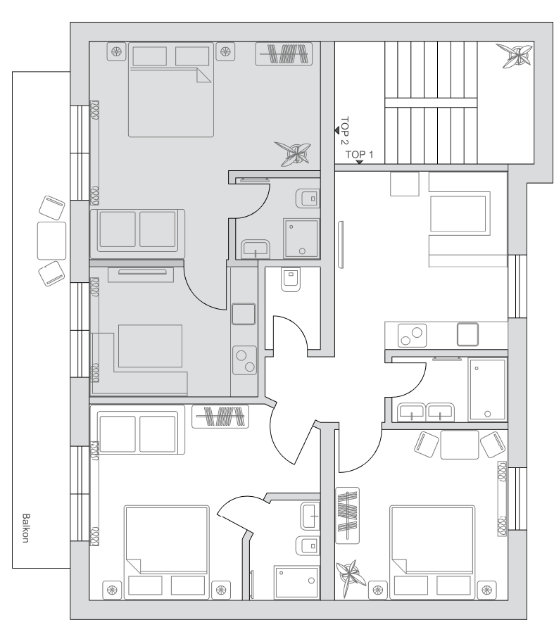 - 1 Dreibettzimmer mit Balkon